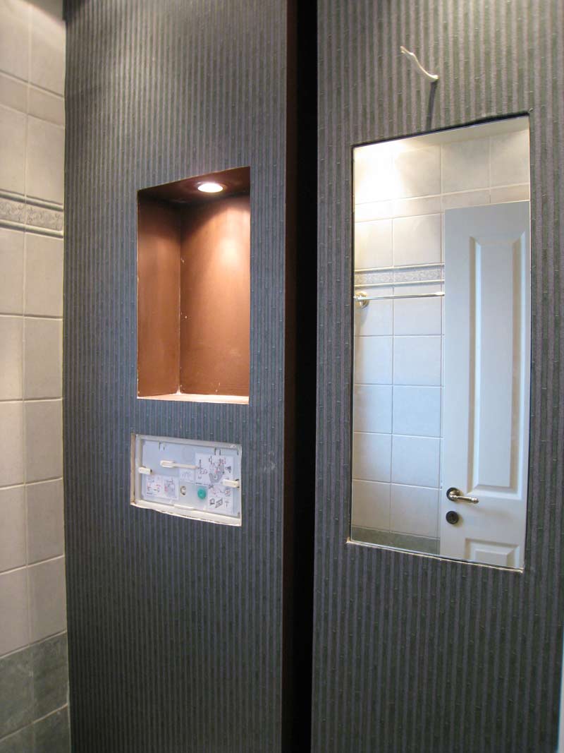 . Κρεμαστή ψευδοροφή από γυψοσανίδα και γύψινη στρογγυλή κορνίζα εσωτερικά αυτής διακοσμούν το λουτρό της οικίας. Επένδυση τοίχου στην κρεβατοκάμαρα για τοποθέτηση ταπετσαρίας επάνω στις γυψοσανίδες.
